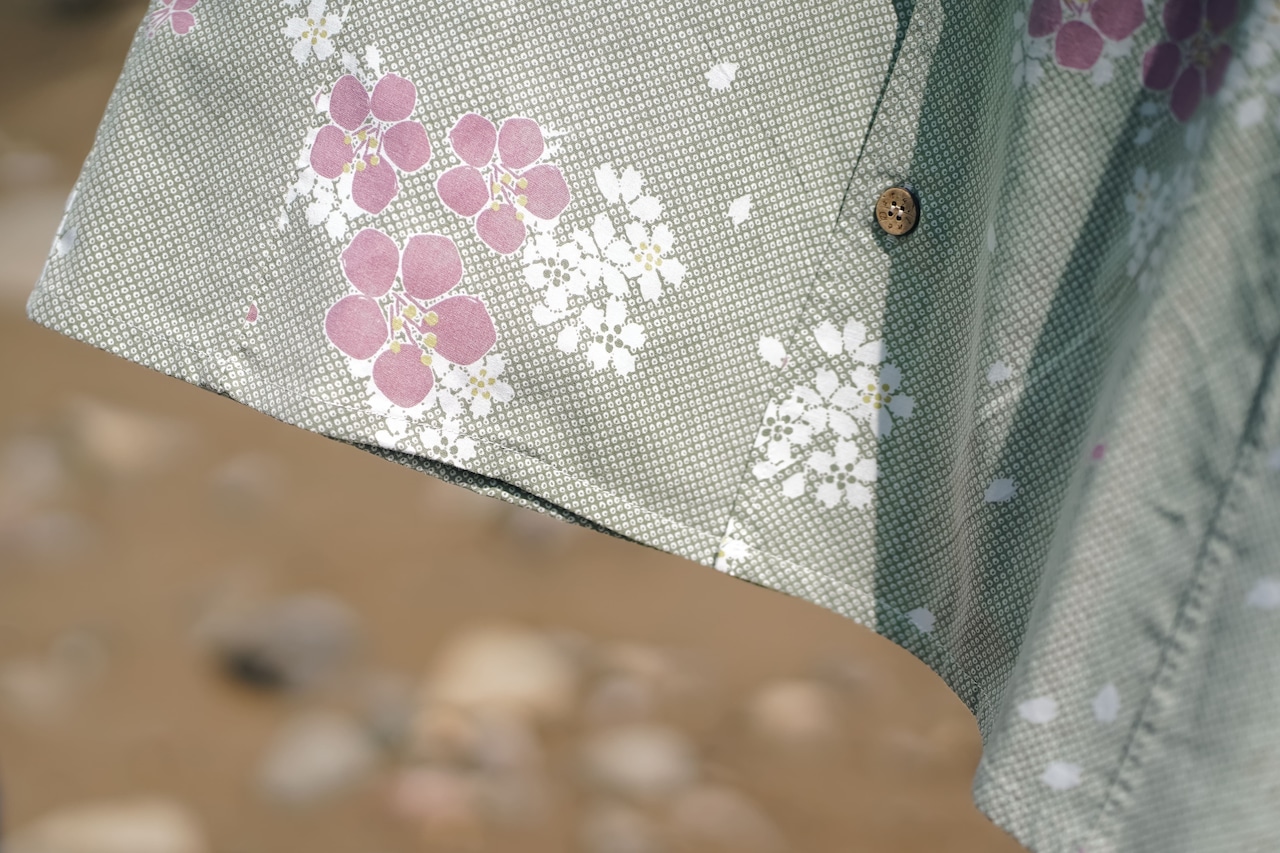 着る人の雰囲気に溶け込むような、ナチュラルでやさしいアロハです。